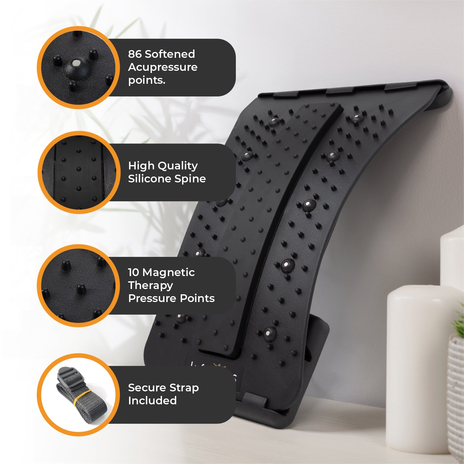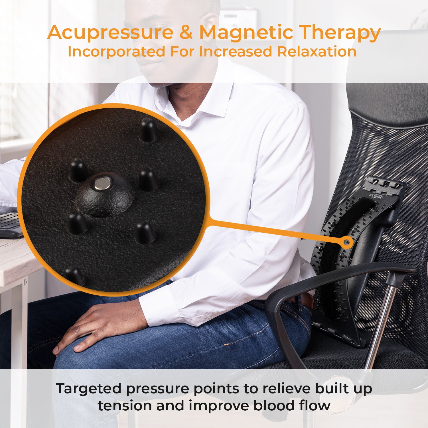The Back Stretcher incorporates 86 acupressure points that enhance back relaxation, as well as 10 therapy magnets that specifically target pressure points to relieve built-up tension and improve blood flow.