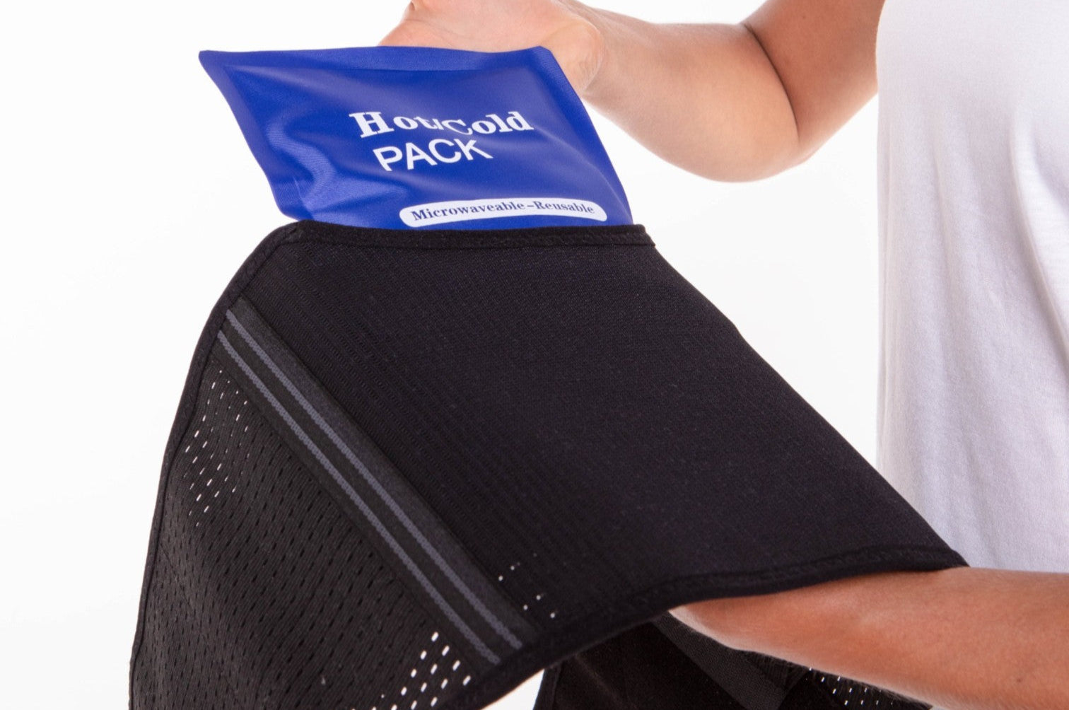 Insert hot/cold pack into the pouch for a maximum of 20 minutes at one time
